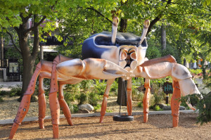 GD+B worked with the Toledo Zoo during aquarium renovations to redesign an outdoor interactive water park and exploration area. The area was designed to have a “wet” side complete with a spray park, and a “dry” side with slides, swings, and seating for families. The island-themed park includes a giant whale tail, a giant crab swing, pelicans, beach huts, and boats. The Aquarium Adventure Trail provides a destination to cool off and play during hot summer zoo trips.