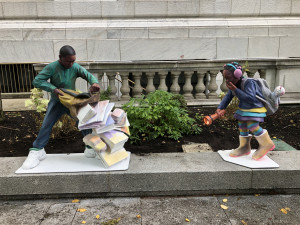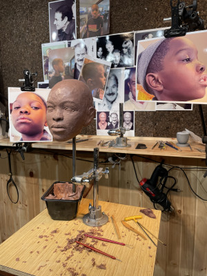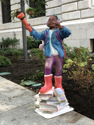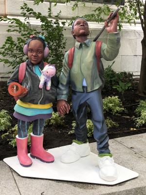 Created for L.A.N.D. Studios and the Cleveland Public Library, these statues were part of a cooperative project for Darius Steward's artwork "Baggage Claim, In Search of New Beginnings". The work was installed in 2021 at the Cleveland Public Library Eastmann Reading Garden in downtown Cleveland. They have since been moved to the interior of the library.