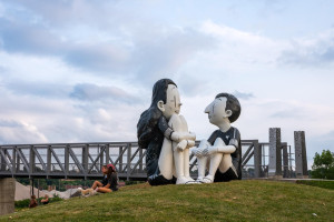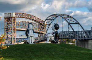 Small Giants by Brazilian artist Alex Senna was brought to life by GD+B. Located at Wendy Park, the two 10-foot-tall sculptures capture the essence of childhood emotions and wonder. The sculptures are positioned uniquely: the boy looks out towards the city, and the girl gazes at Lake Erie, symbolizing a connection between urban life and natural beauty.