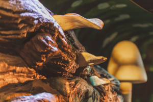 The Oak Forest room features larger-than-life dioramas that give the illusion of walking amongst the oak forest at 1/16th the size of an average human. The dioramas highlight the plant and animal life that roam the forest floors in Ohio.