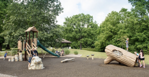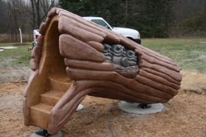 The Secor Park donor recognition project incorporates sentiment and interaction. The hollow log provides a fun interactive space for children to climb in while displaying the names of donors “carved” into the trunk or the tree.